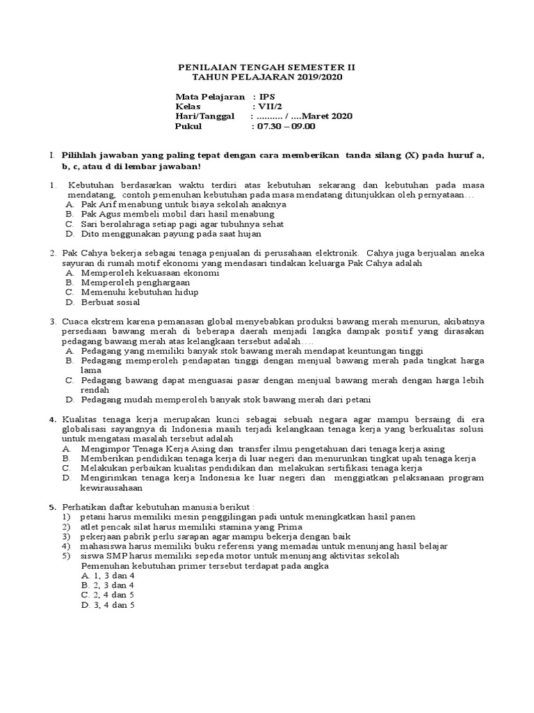 50 Soal Jawaban Bab Kelangkaan Dan Kebutuhan Manusia Pilgan Essay Muttaqin Id