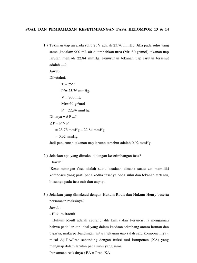 Contoh Soal Dan Jawaban Kesetimbangan Fasa