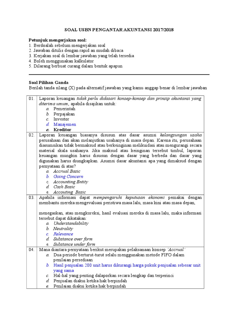 Soal Usbn Pengantar Akuntansi 2018