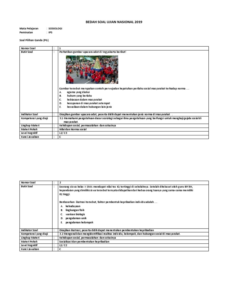 Soal Latihan Usbn Sosologi Sma Tahun 2018 2019 Latihan Sma Pengikut