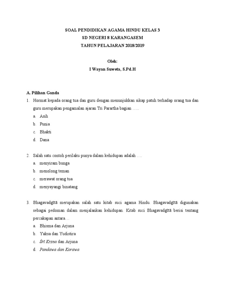 Contoh Soal Dan Jawaban Tentang Mahabarata