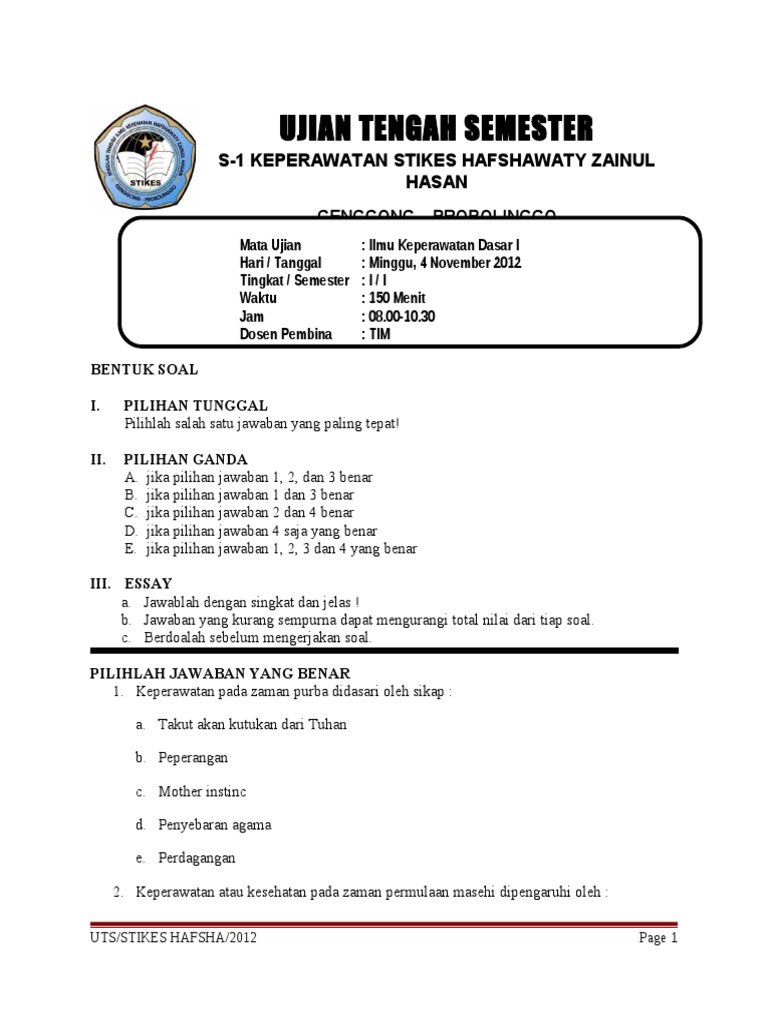 Contoh Soal Ulangan Tengah Semester Ii Mapel Pai Kelas 6 Mata Pelajaran Agama Nama Kelas Vi Enam Nilai Paraf Ha Pendidikan Matematika Kelas 5 Agama
