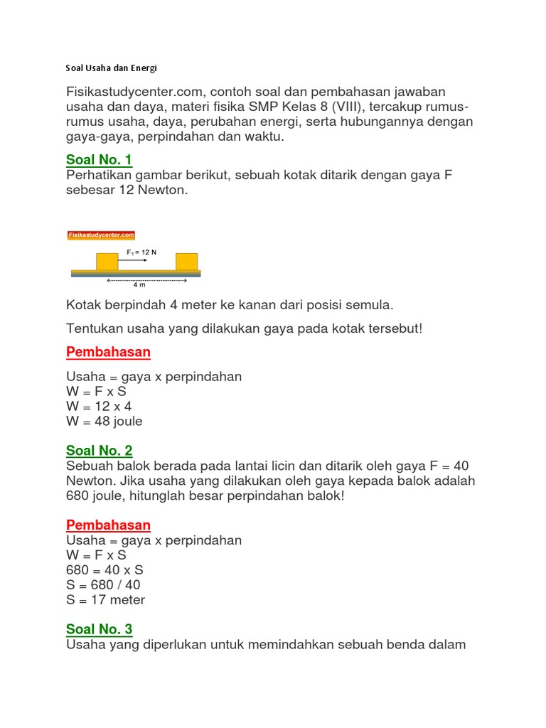 Contoh Soal Usaha Dan Energi Smp 2 Idschool
