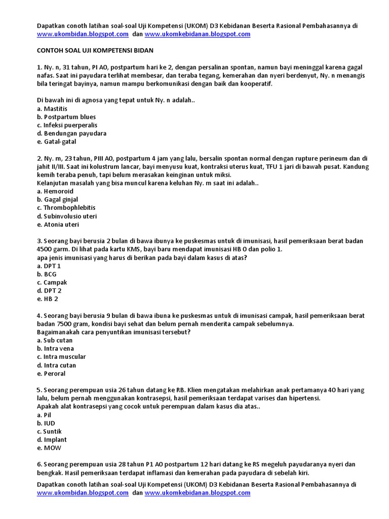 Contoh Soal Uji Kompetensi Bidan Dan Kunci Jawaban Pdf