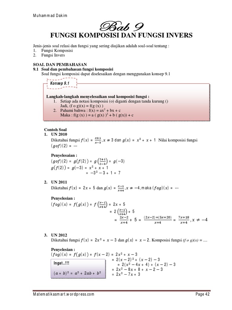 9 Fungsi Komposisi Dan Fungsi Invers Pdf