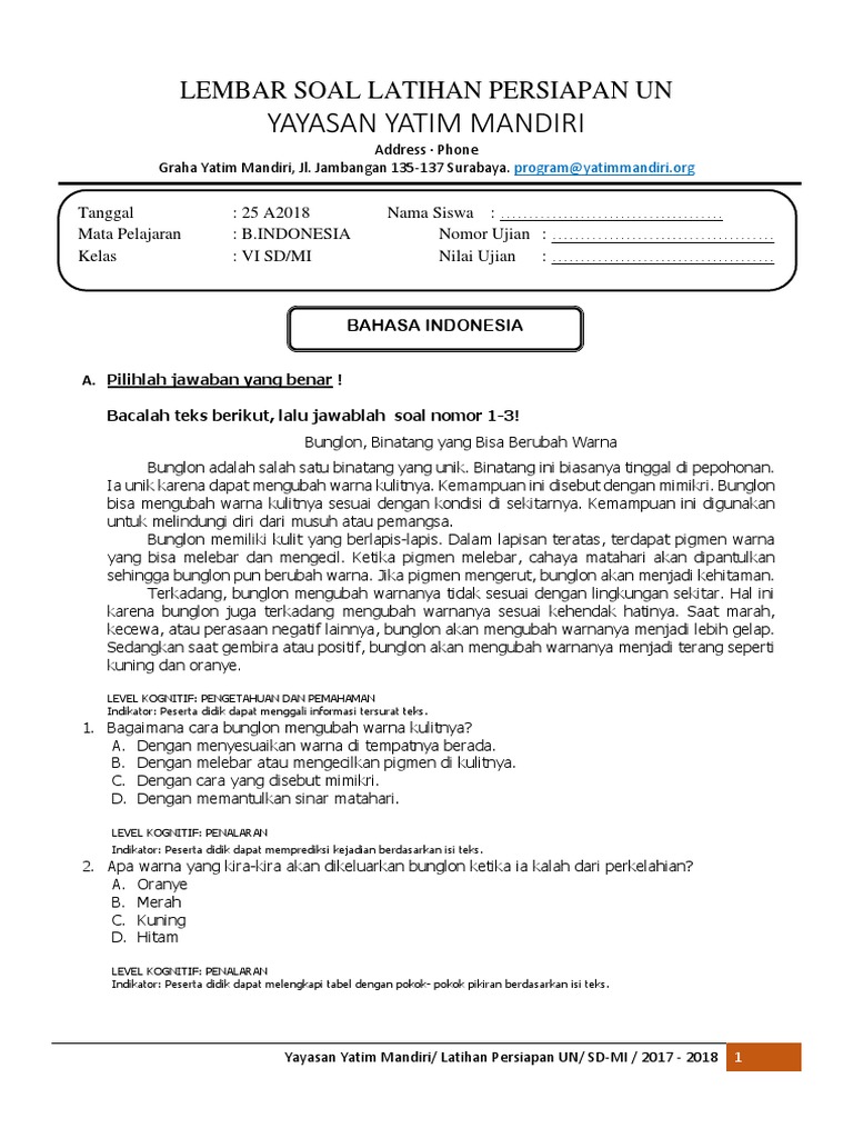 Soal Latihan Usbn Bahasa Indonesia Sesuai Kisi Kisi 2018 Docx