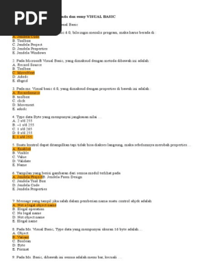 Contoh Soal Pilihan Ganda Dan Essay Visual Basic