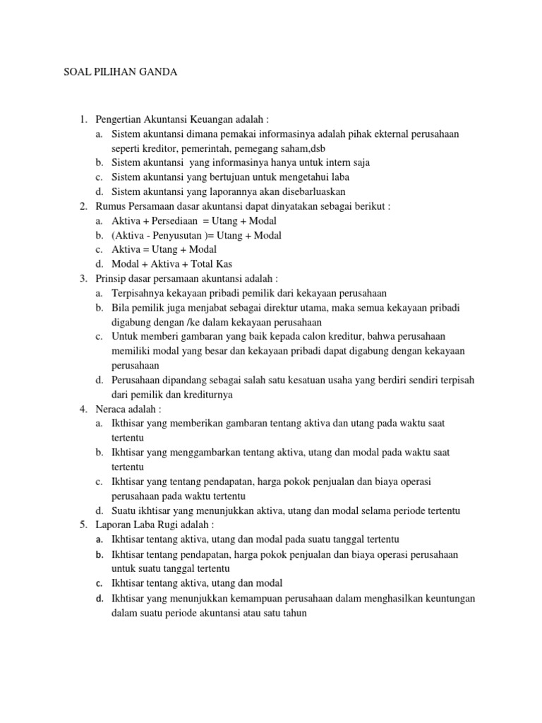 7 responses to soal pilihan ganda akuntansi lembaga dan jawaban sobat sehat january 5 2019 at 12 16 am. Soal pilihan ganda akuntansi lembaga dan jawaban. 22 tuesday apr 2014.