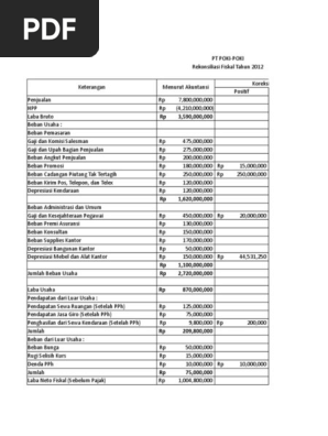 Contoh Soal Dan Jawaban Rekonsiliasi Fiskal Pt Poki Poki