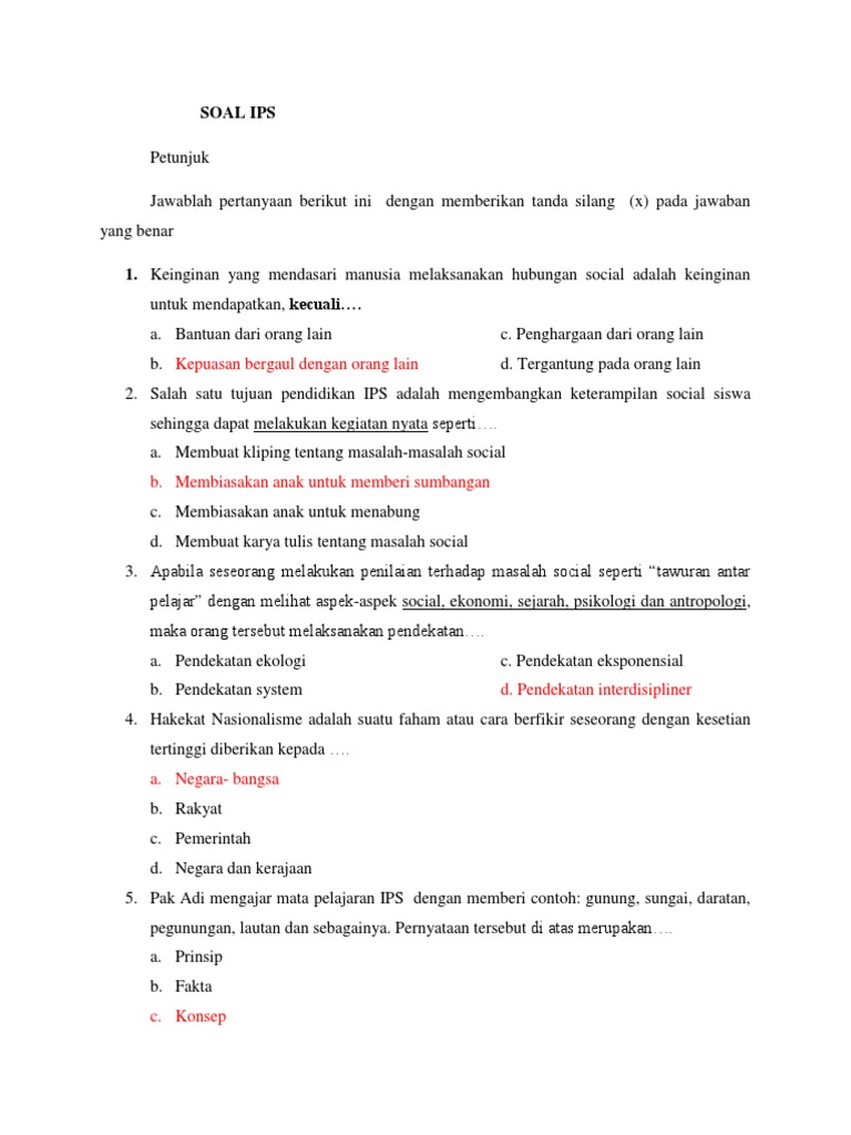 40 Contoh Soal Ips Terpadu Kelas 7 Smp Mts Dan Kunci Jawaban