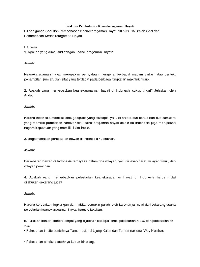 Soal Dan Jawaban Keanekaragaman Hayati Docx