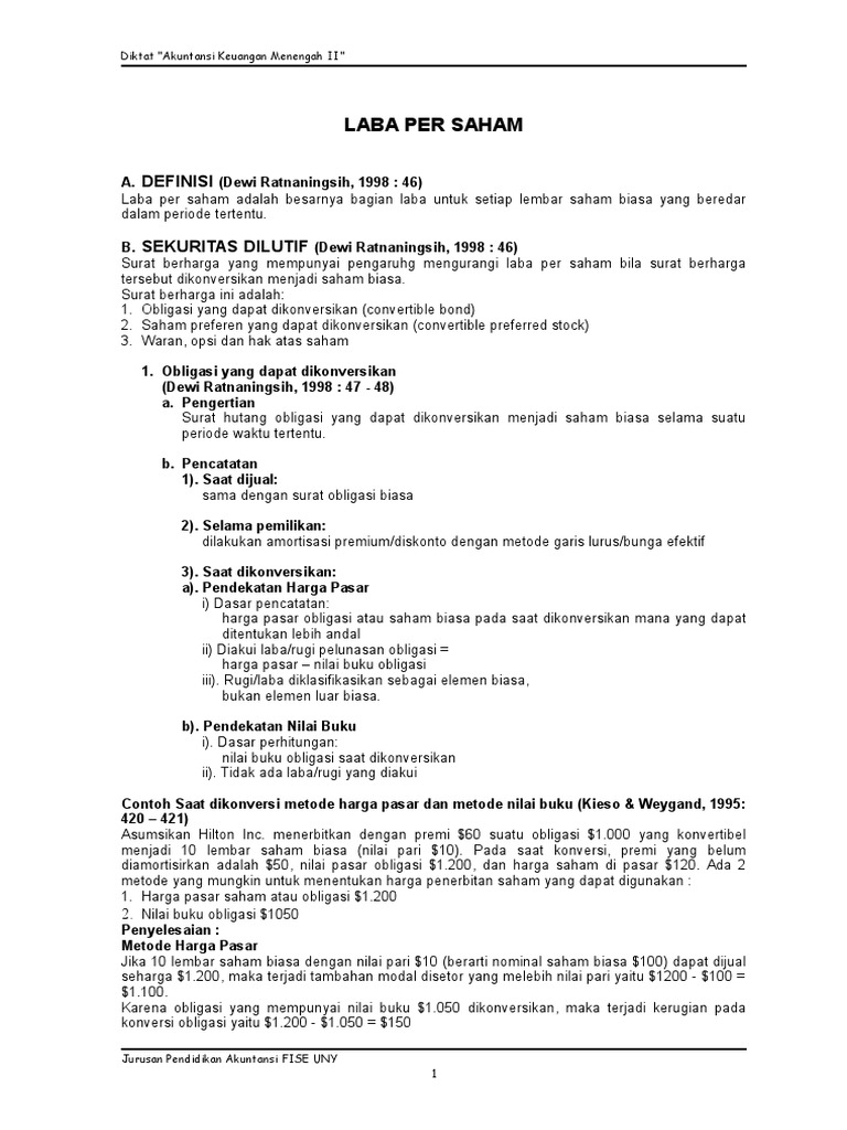 Doc Bab 16 Sekuritas Dilutif Laba Per Saham Wahyu Nur Fitriani Academia Edu