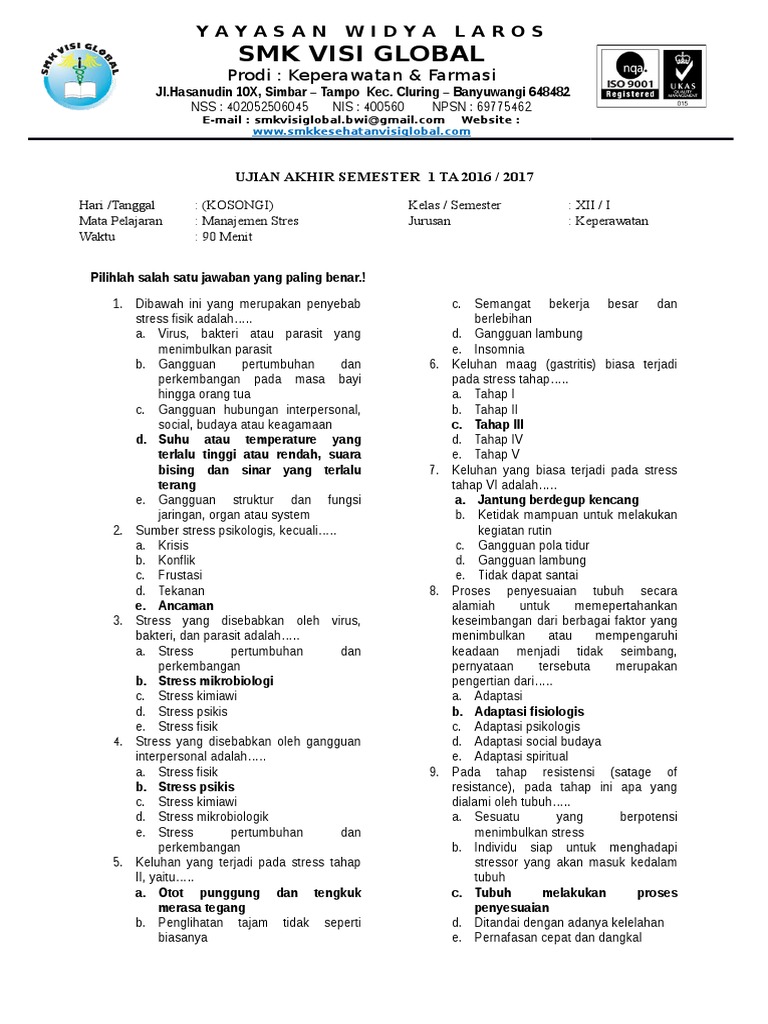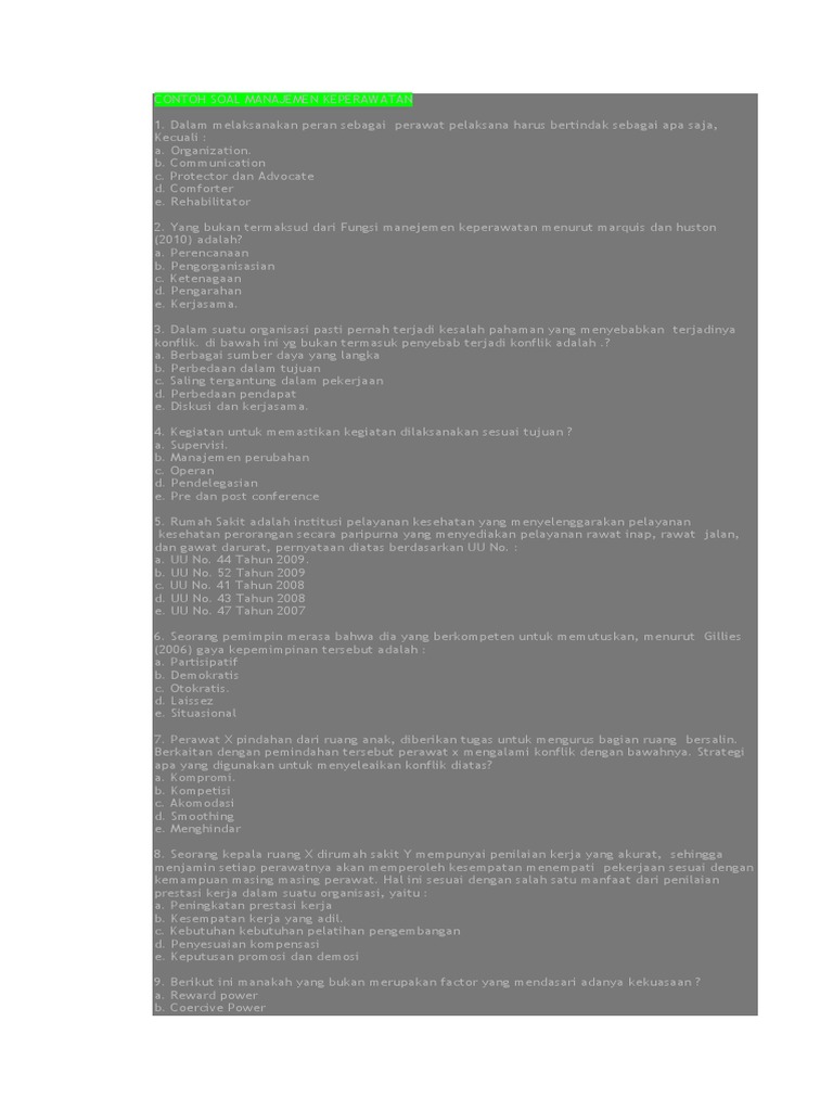 Contoh Soal Manajemen Keperawatan Dan Kunci Jawaban Edisi 7 Ukom Perawat