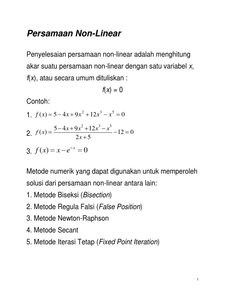 Bab 3 Penyelesaian Persamaan Tak Linear