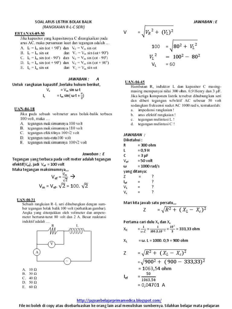 Kumpulan Soal Dan Pembahasan Fisika Listrik Arus Bolak Balik Guru Baru Indonesia Page 4