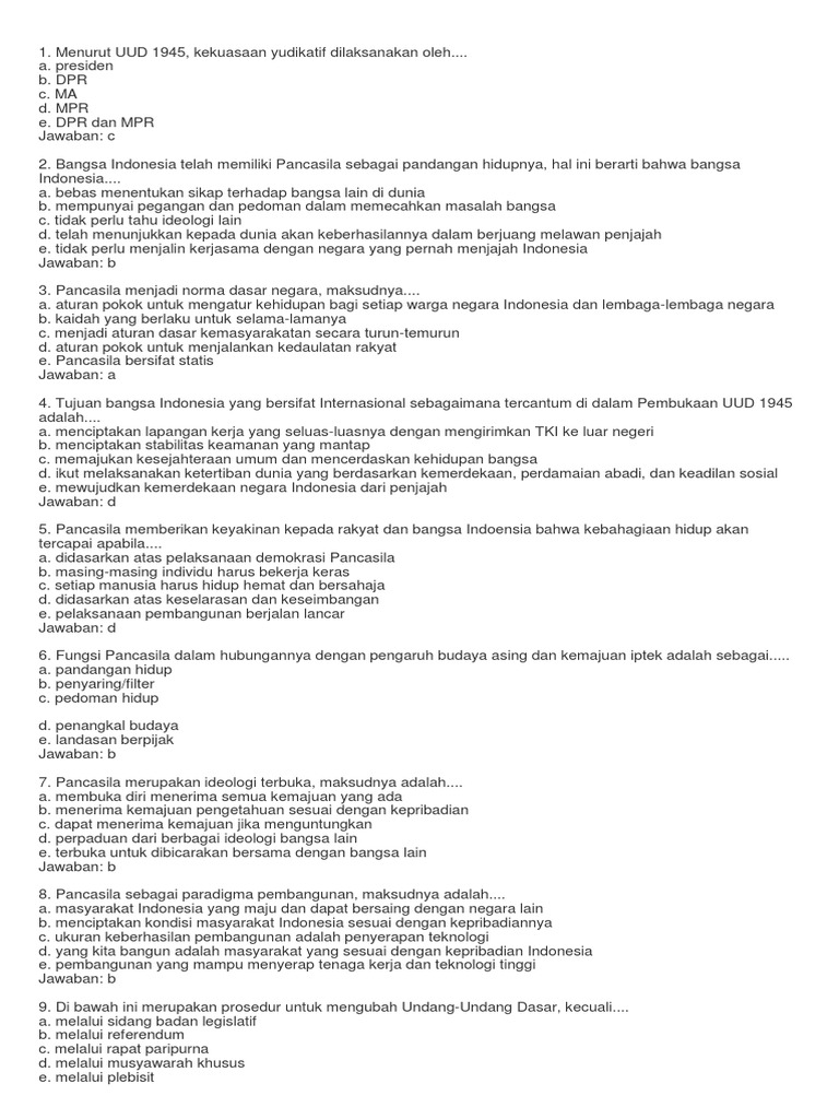 Contoh Soal Uas Pkn Kelas Xii Semester 1 Beserta Jawabannya