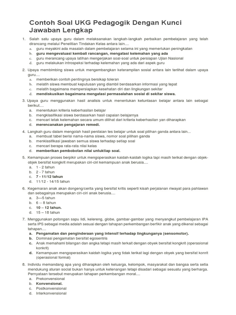Contoh Soal Ukg Pedagogik Dengan Kunci Jawaban Lengkap