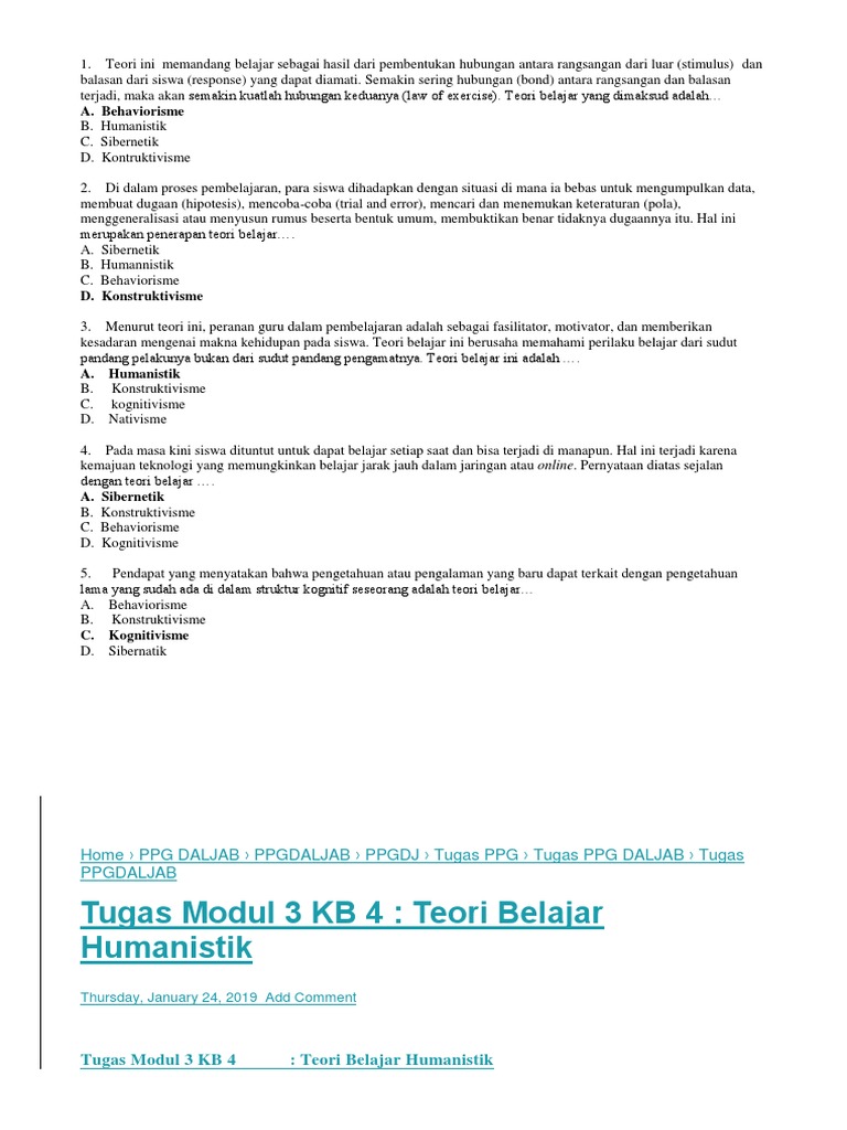 Contoh Soal Teori Belajar Dan Pembelajaran