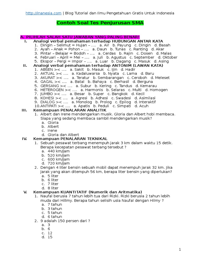 Contoh Soal Tes Psikotes Sma Dan Jawabannya