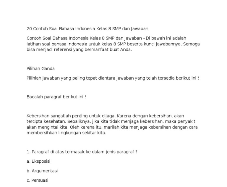 20 Contoh Soal Bahasa Indonesia Kelas 8 Smp Dan Jawaban Ylyxqyp9mvnm