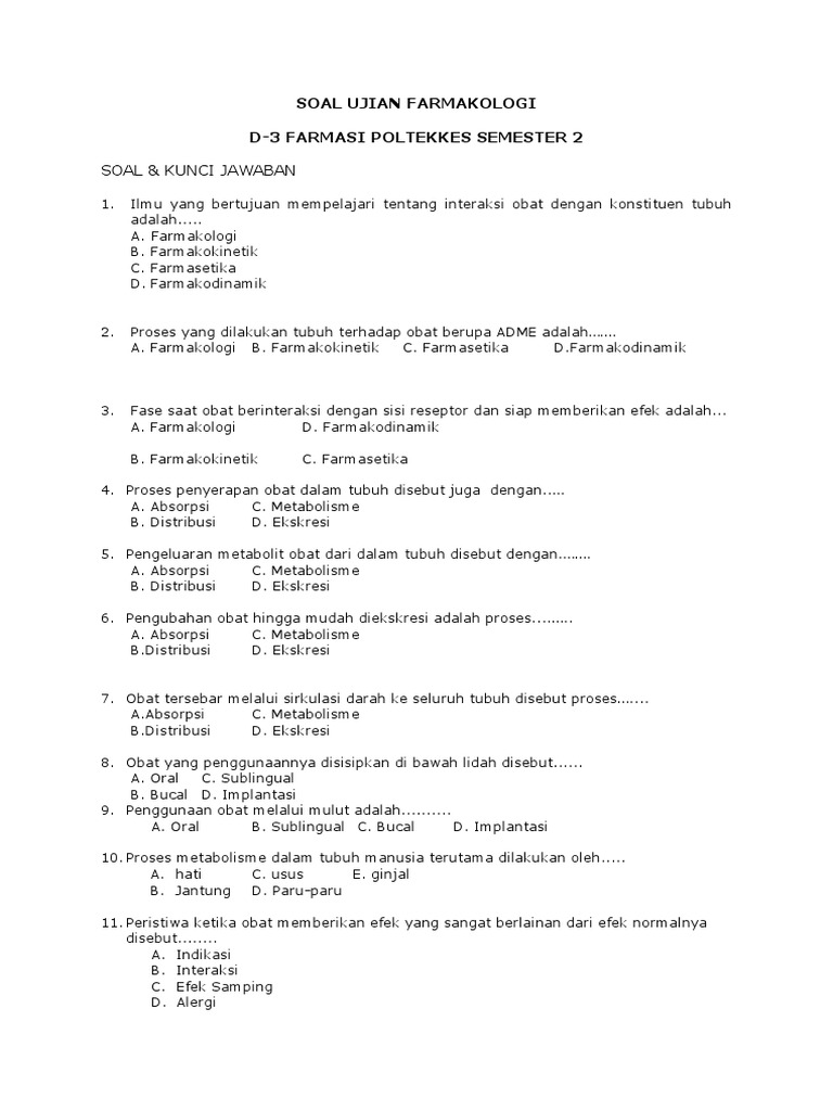 Contoh Soal Dan Jawaban Farmakokinetik