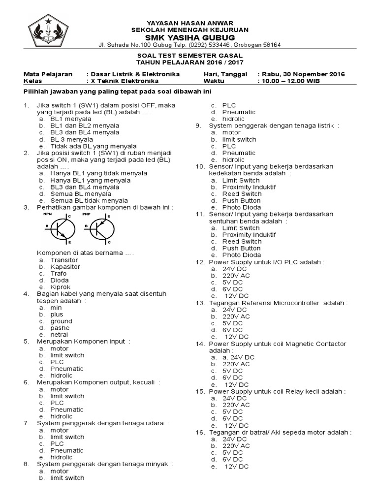 Contoh Soal Dan Jawaban Kelas X Smk Dasar Dasar Elektronika