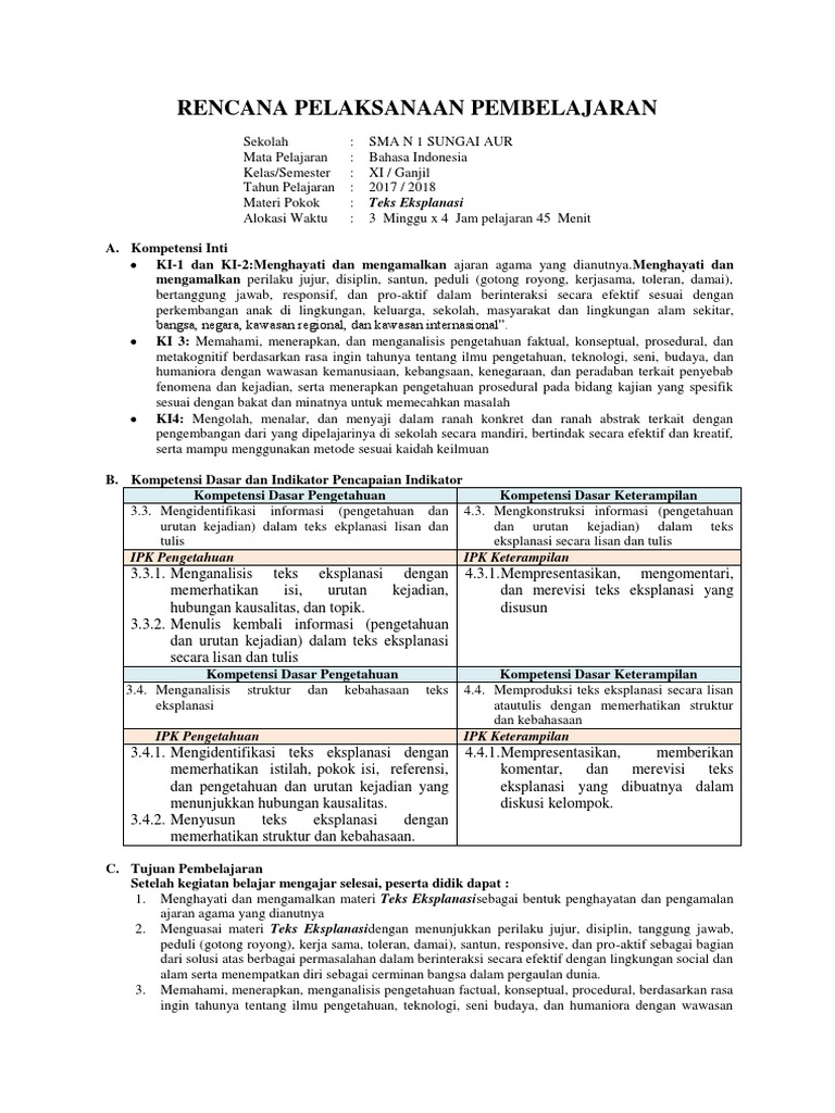 Rpp Kd 3 3 Dan 4 3 Teks Eksplanasi Docx