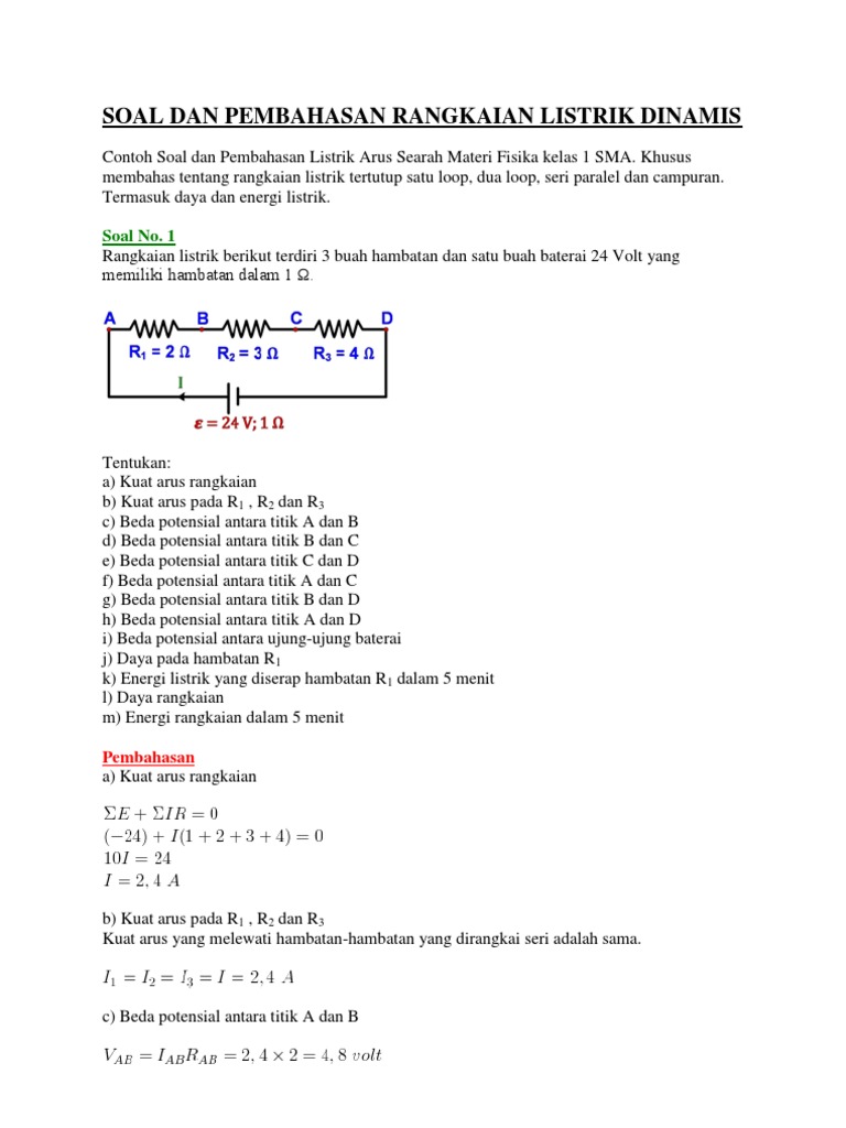 Soal Dan Pembahasan Rangkaian Listrik Dinamis