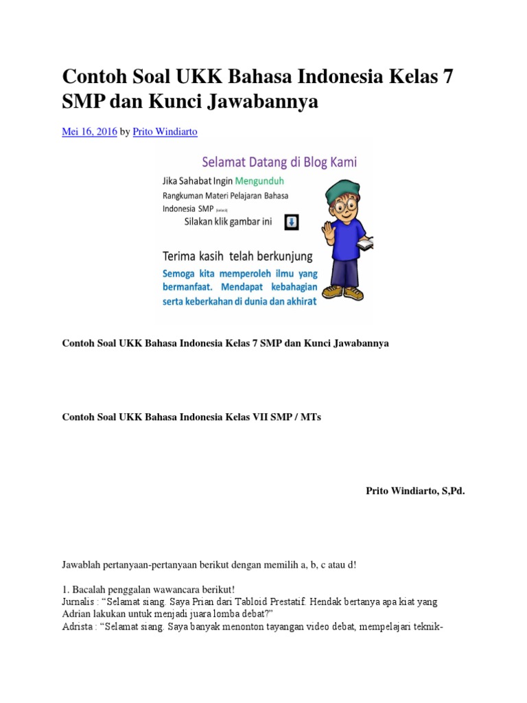 Contoh Soal Ukk Bahasa Indonesia Kelas 7 Smp Dan Kunci Jawabannya Docx