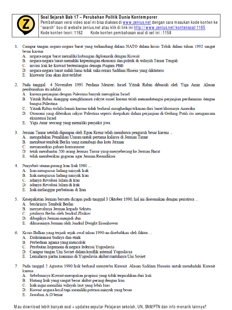 17 Soal Sejarah Bab Perubahan Politik Dunia Kontemporer