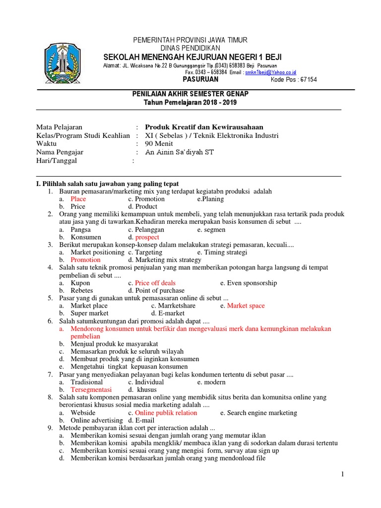 Contoh Soal Pemasaran Kelas 12 Semester 1 Kurikulum 2013 Lengkap Beserta Jawabannya Administrasi Ngajar