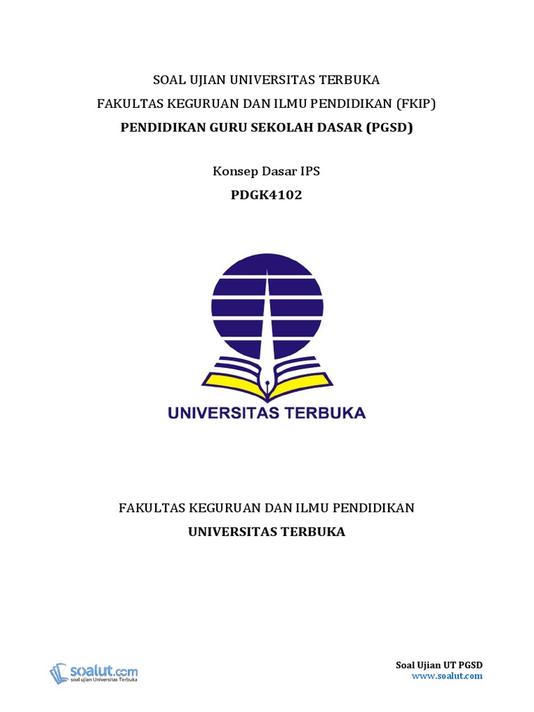 Soal ujian ut pgsd pdgk4405 materi dan pembelajaran ips sd lengkap dengan kunci jawaban dan pembahasan soal bisa anda pelajari untuk mempersiapkan diri sebelum mengikuti ujian akhir semester yang tak lama lagi dimulai. Soal ujian ut pgsd semester 2 pdgk4106 pendidikan ips di sd serta kunci jawaban kami bagikan untuk anda mahasiswa universitas terbuka jurusan pendidikan guru sekolah dasar pgsd sebagai bahan pembelajaran dalam menyiapkan diri untuk mengikuti ujian akhir semester nantinya pada artikel sebelumnya kami telah berbagi soal yang sama terkait semester 2 yaitu soal ujian ut pgsd pdgk4105 strategi. Sebelumnya kami juga telah berbagi soal ujian ut pgsd semester 4 yaitu soal ujian ut pgsd idik4010 komputer dan media pembelajaran.