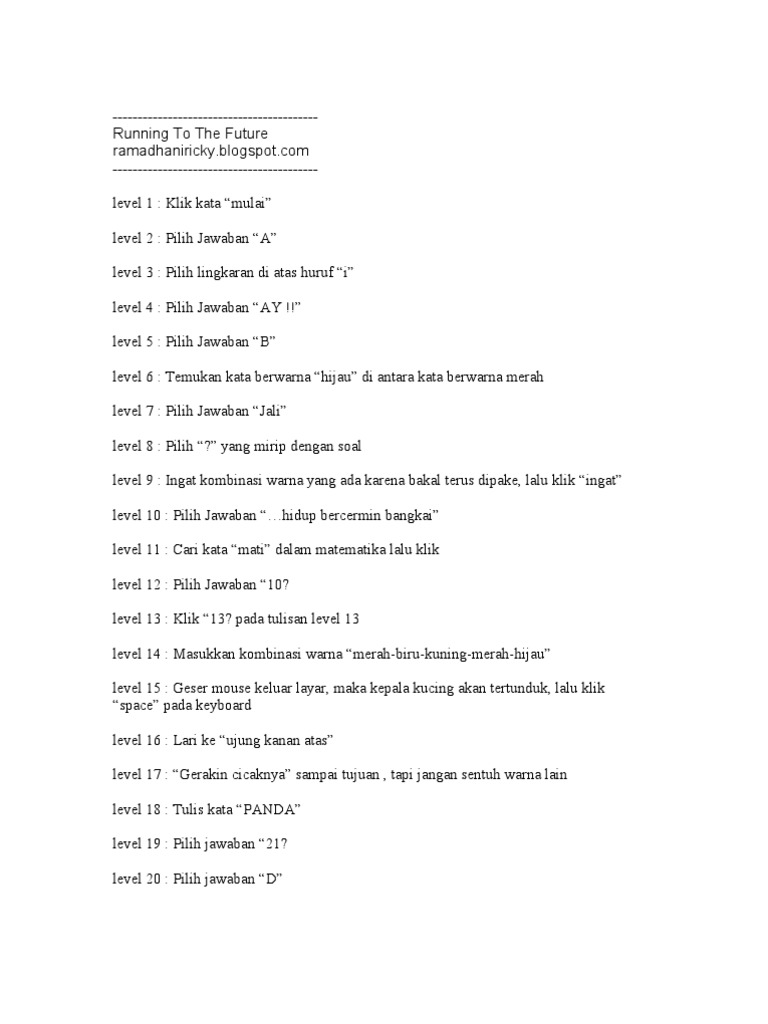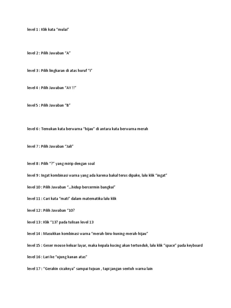 Pertanyaannya apakah bisa anda baca. Level 1 Klik tulisan mulai 2. Hue karna ga ngerti ngikut aja deh Level 3 Titik dihuruf i.