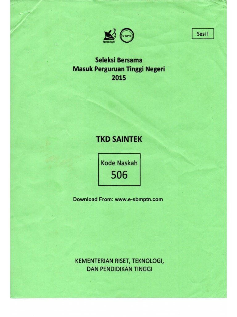 Soal Dan Kunci Jawaban Saintek Sbmptn 2015 Kodesoal 506