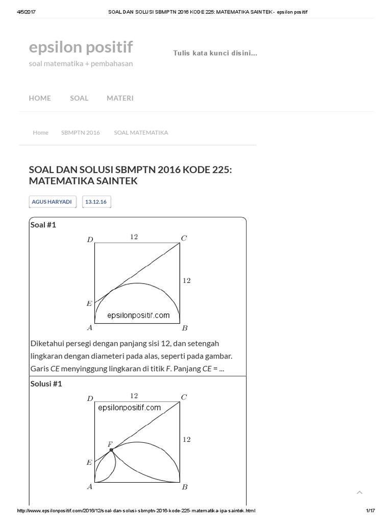 Kunci jawaban sbmptn saintek 2016 kode 225. Pembahasan SBMPTN 2016 Matematika Dasar Kode 317 Berikut ini pembahasan SBMPTN 2017 Saintek Kode 135 Matematika IPA format pdf yang bisa anda download. Pak RezaRumah Belajar Daniel adalah sebuah lemb. Pelajari 5 Contoh Soal Sbmptn.