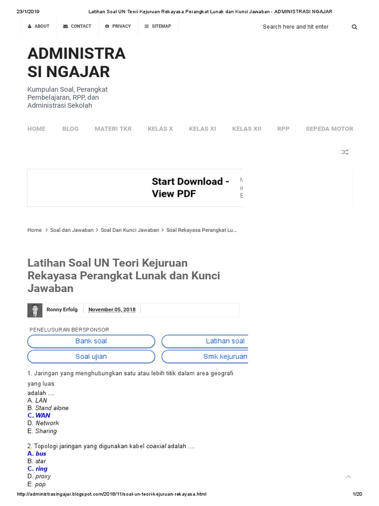 Latihan Soal Un Teori Kejuruan Rekayasa Perangkat Lunak Dan Kunci Jawaban Administrasi Ngajar