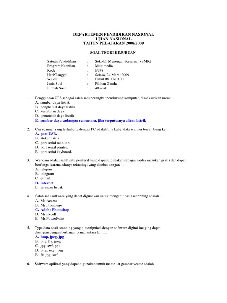 Prediksi soal ipa ujian nasional sd tahun 2012soal try. Kumpulan contoh soal multimedia pilihan ganda jawaban 2 komentar Sahabat pembaca yang baik hati dan semoga dalam keadaan sehat kali ini penulis ingin sharing tulisan yang berjudul kumpulan contoh soal multimedia jawaban untuk lebih lanjutnya sebagai berikut. Soal Ekonomi Tryout 3 Paket B 10.