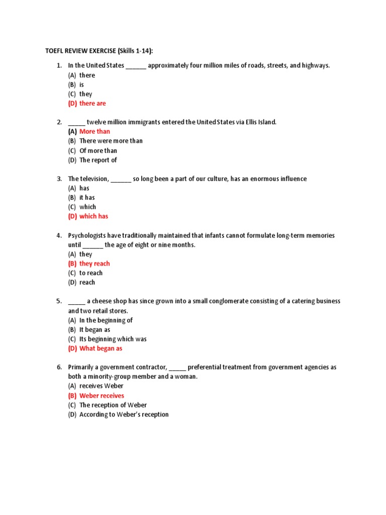 Toefl exercise skill 3 4 structure question. TOEFL Mini-test Skills 1-12 TOEFL Mini-test Skills 1-12 TOEFL Review Exercise Skills 1 - 20 TOEFL Review Exercise Skills 1 - 20 TOEFL Review Exercise Skills 1 a 32 TOEFL Review Exercise Skills 1 a 32 TOEFL Grammar Practice Test Quiz. He would like some coffee.