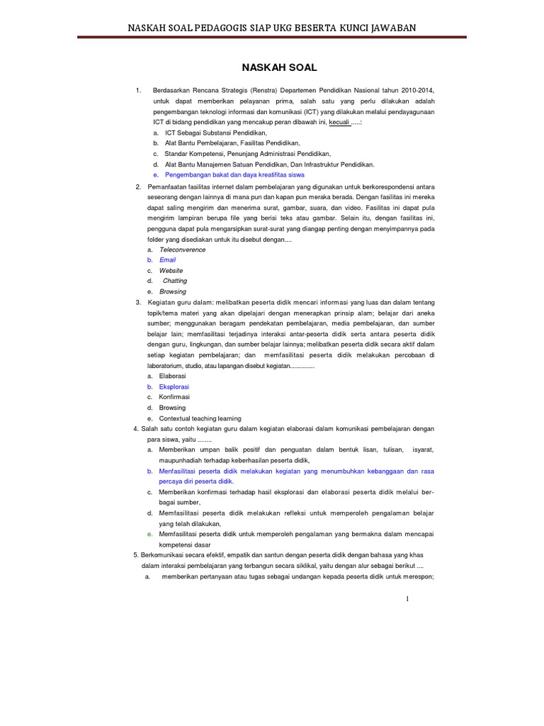 Kumpulan Soal Ukg 2015 Dengan Kunci Jawabannya