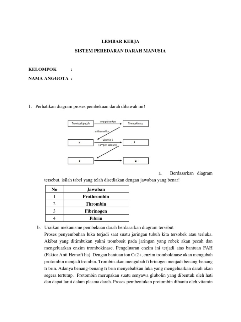 Kunci Jawaban Perhatikan Diagram Proses Pembekuan Darah Dibawh Ini