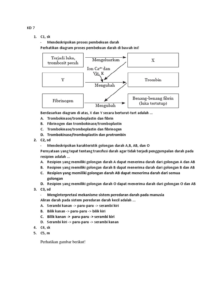 5 Perhatikan Diagram Proses Pembekuan Darah Di Bawah Ini Berdasarkan Diagram Diatas X Dan Y Brainly Co Id