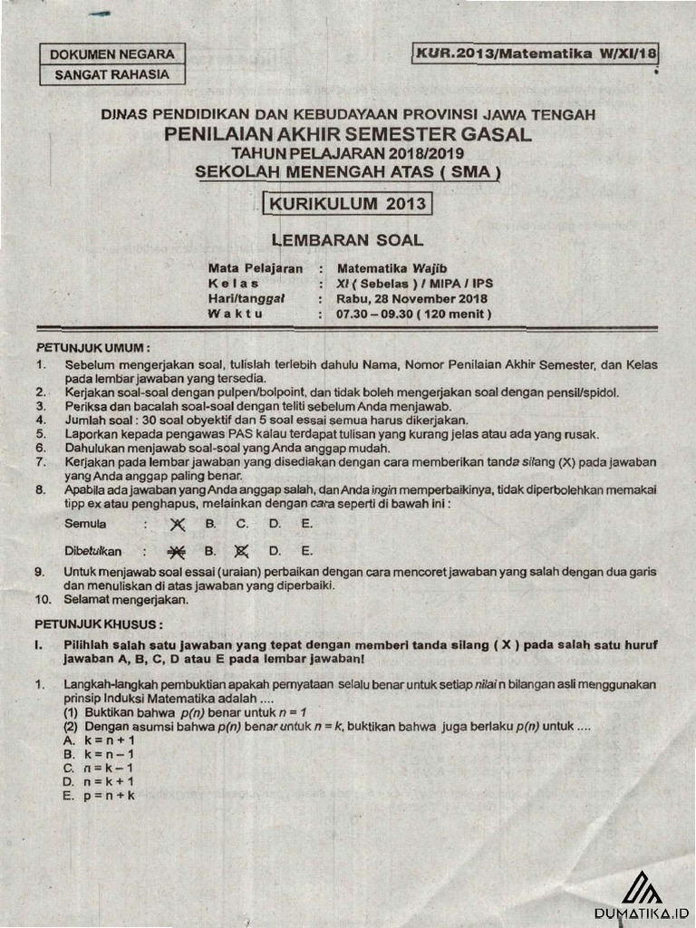 Soal Matematika Wajib Kelas 11 Semester 2 Dan Jawabannya Guru Galeri