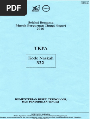 Soal soal sbmptn tkpa 2016 kode 322 Slideshare uses cookies to improve functionality and performance and to provide you with relevant advertising. Sebelum bergabung dengan Soal TPA pada tahun 2014 TKPA pada tahun 2013 TKDU masih terpisah tersendiri. Download Soal SBMPTN TKDU 2013 Kunci Jawaban Kode 322.