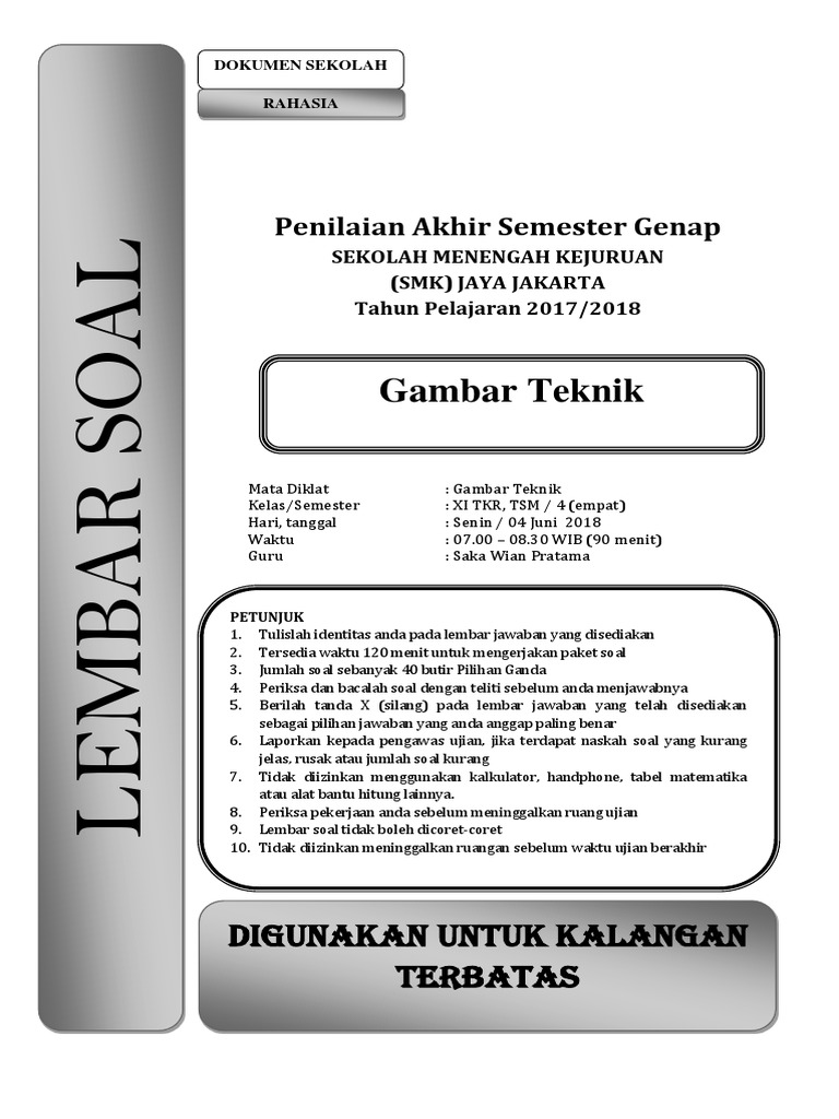 Format soal uas smk 2017. Bank Soal UAS TGB 2017. Soal Latihan UAS SD Kelas 5 Tahun Ajaran 2017 Ujian Akhir Semester UAS dilaksanakan disetiap akhir semester. Latihan soal uas smk 2015 - berikut ini adalah latihan soal uas smk 2015 yang bisa anda download secara gratis di website kami.