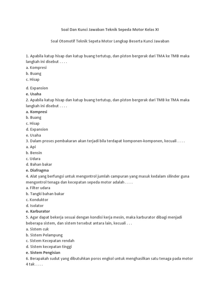 Free Download Soal Teknik Sepeda Motor Full Kunci Jawaban