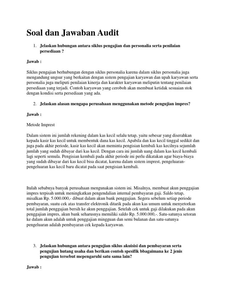 Contoh Soal Dan Jawaban Audit Pemeriksaan Piutang Ilmusosial Id