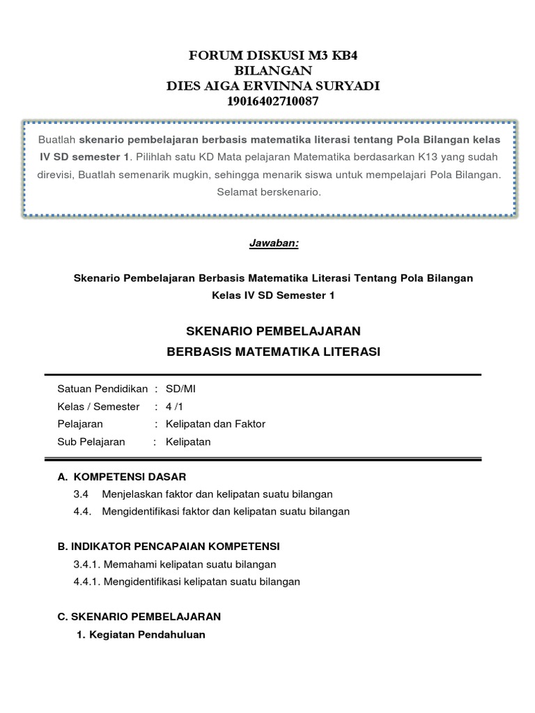 Tes Sumatif Rancangan Pembelajaran Inovatif. Skachayte Kunci Jawaban Forum Didkusi M5 Pedagogi Matematika PDF besplatno secara di SamPDF. Standar kompetensi kompetensi dasar metode pengajaran media pembelajaran sumber belajar langkah pembelajaran tes hasil belajar dan kunci jawaban tes 4.