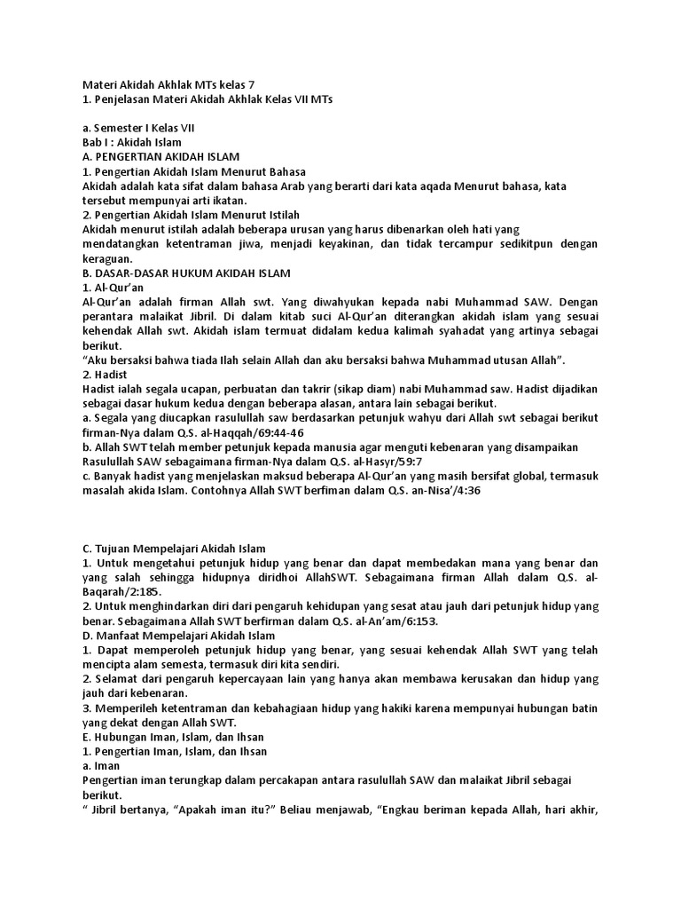 Kumpulan Soal Akidah Akhlak Kelas Vii Mts
