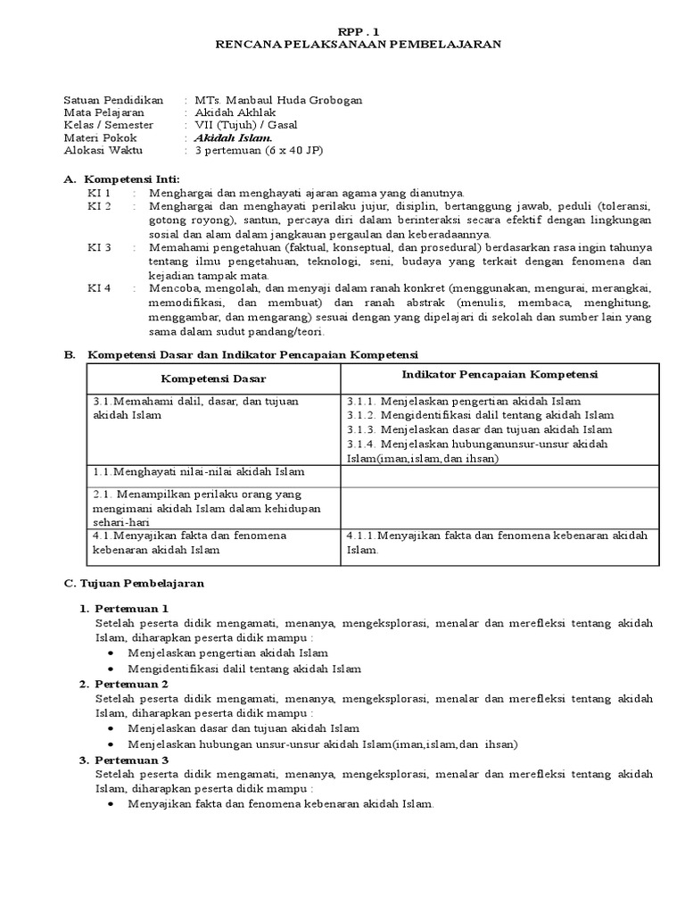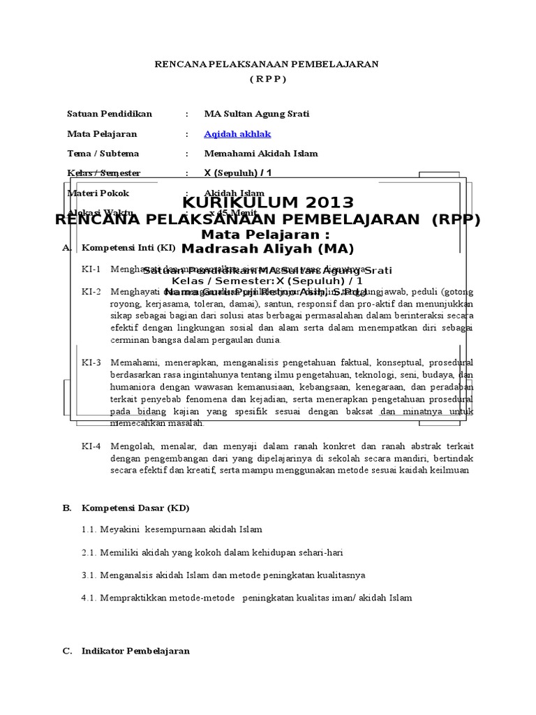 Doc Rpp Akidah No 1 1 Docx Epul Kusnaedi And Ayu Ratna Dewi Academia Edu