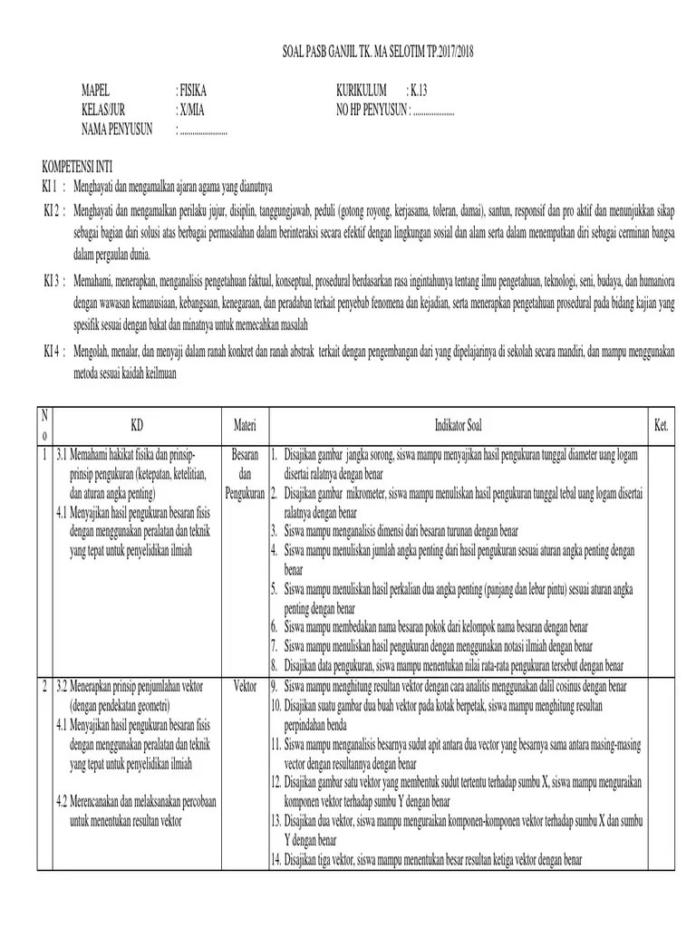 Kisi Kisi Soal Pas Uas Fisika Kelas 10 K13 Tahun 2018 2019 Websiteedukasi Dubai Khalifa